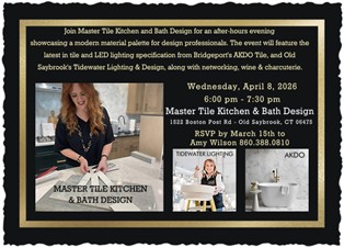 Attention Designers, Architects, Builders, Contractors, and Electricians!! RSVP @ 860.388.0810 for a fun, relaxed evening of networking and inspiration for your upcoming projects! April 8th 6:00-7:30 pm at Master Tile Kitchen and Bath Design - 1522 Boston Post Rd Old Saybrook